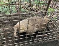 熊の捕獲用の箱罠にアナグマが入りました 熊を獲るには罠が小さいかも知れません