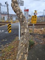 ザクロの木の柄が面白い 剪定してあったので来年は実が少ないはず