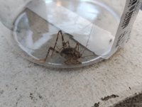 タモを持って入れたが跳ねないし 網に引っかかりすべらないのでタモの奥にいかずひっくり返せない やっとの状態で無理があるが玄関 門 を開け外に行くとしーちゃんママ一家がいて ママさんは小さい頃から見慣れていてコウロギ と喜び いないよ! 此処にくるまでの間に落としたのか