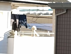 豆まきで2かいのベランダに出ると裏のワンちゃんが