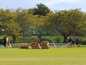 早速雁堤に9時40分から10時少し過ぎまで混合散歩 2500歩で帰宅 明日かりがね祭りのため係の方達が支度されていました