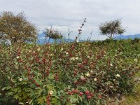 茶畑の間にパッと現れた赤の実 花も儚げには感じられませんでした オクラ???