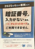 今後はクレジット決済で暗証番号が不明の場合には別の決済方法をご利用頂くか、現金決済となりますのでご注意ください。