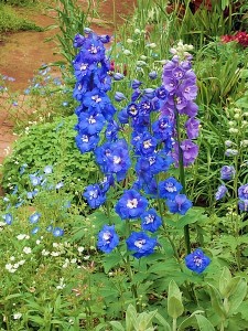 雑草園のような庭でデルフィニュームが咲いてます。どっから見ても洋花…いろいろ思い出のある花なのでして・・