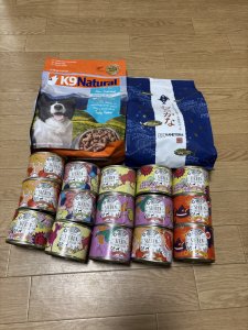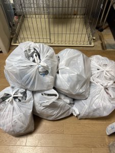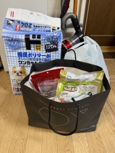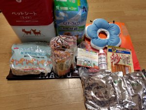 ペットシーツ、犬用フード、マナーウェアなどをいただきました。