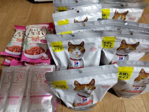 フワフワマット、ドッグフード、キャットフードを頂きました。
