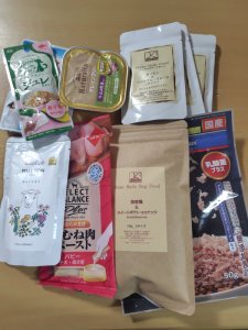 お手紙とともに、犬用フード、ペットシーツ、おむつ、フィラリア予防薬等を頂きました。