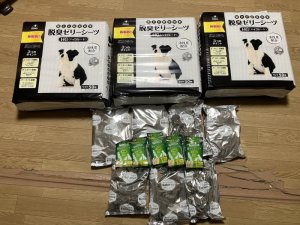 犬用フード、ペットシート、歯磨きシートをいただきました。