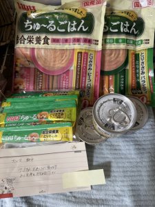 猫用ドライフード、ウェットフード、カイロを頂きました。