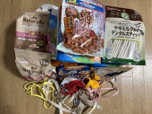 犬用フード、ハーネス・リード、おむつを頂きました。