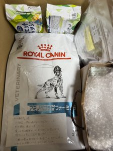 お手紙とともに、犬用フード、医薬品、ウェットティッシュ等を頂きました。