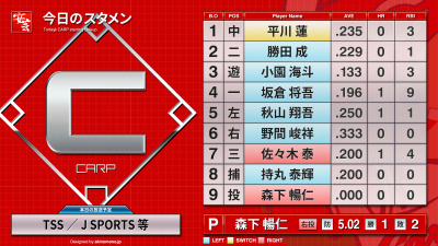 先発の大瀬良は1失点で6回まで。