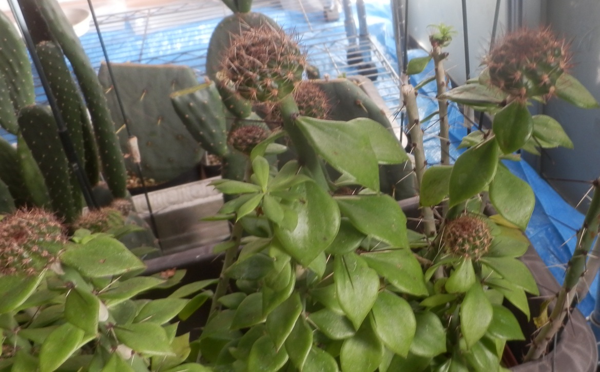 上記のエキゾチカは3オプンチオイデスの交配種だそうです。オプンチオイデスはウチワサボテン(オプンチア)風の体型をしていてこの名がついています。