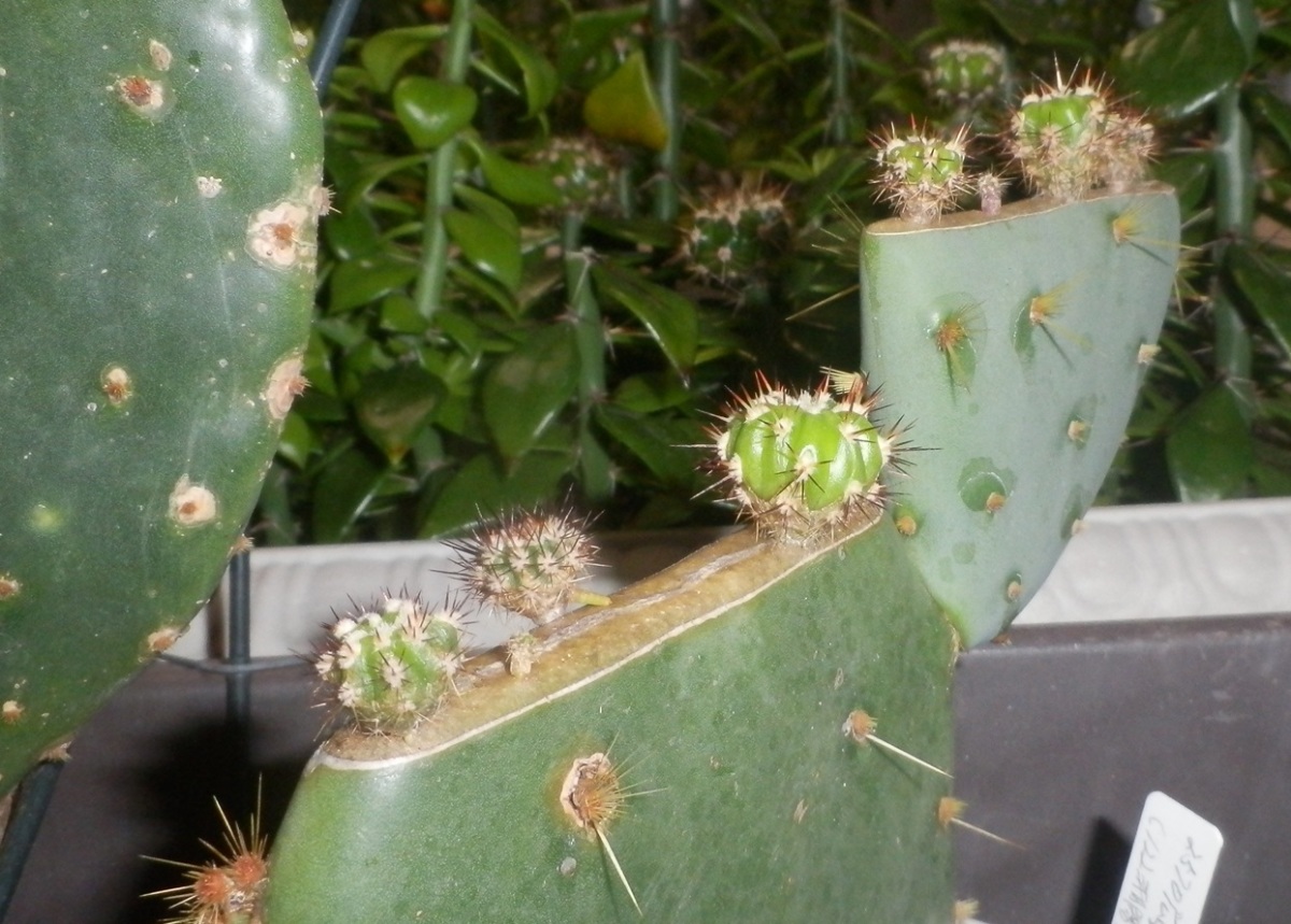 添付写真は、部屋に取り込んだ 2025.08.20のウチワ台木実生接ぎ です。