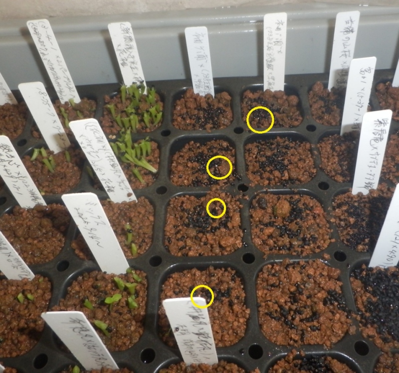 今朝は、雨で、グランドゴルフが中止で、玄関の軒下に取り込んだ昨日の2024年実生3トレーを植え替えの予定です。どれもあまり条件の良くない棚1段目の住人だったのとご主人様(笑)の管理が悪いのも相まって生存率がよくありません。