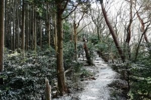 昨日、南宮山に行ってきました。展望台付近の倒木の上には雪が乗っていて、休憩している間に雪が舞ってきました。展望台の温度計は−2℃。