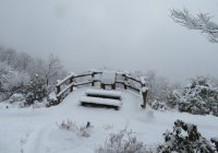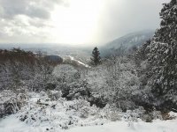 朝起きて、西の山を見ると養老山や南宮山に雪が積もっていました。麓には積もっていないので、ゆっくりしていると解けてしまうと思い早めに南宮山へ出かけました。展望台付近では5cmほど。あまり寒くなかったのでコーヒーを飲んでゆっくり休憩してきました。