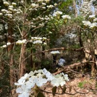 近場の里山ではムシカリが見頃に 花の下はイノシシの足跡だらけでした