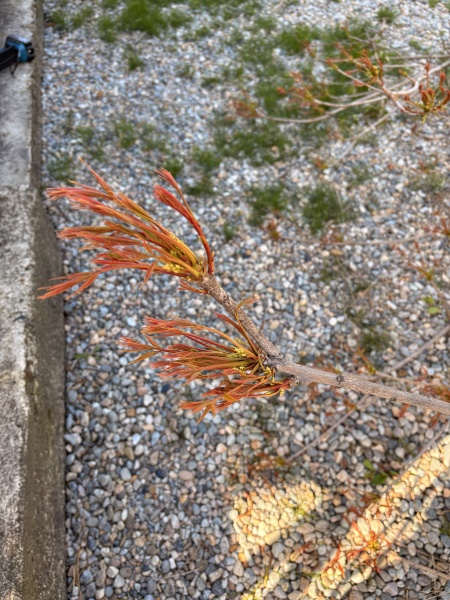 昨日から、羽状複葉の木で、若葉が赤く、樹皮が縦に裂けないものを考えています。ヌルデ?などと悩んでいるうちに、葉っぱが展開して、わかりやすくなっているかもしれませんね。