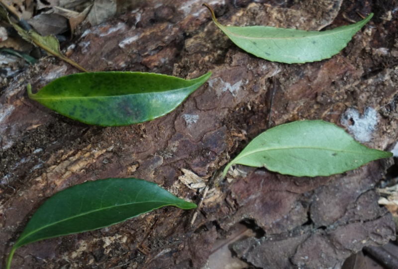 福岡県の照葉樹林に落ちていました。標高100m、葉のサイズは5cmくらいです。
