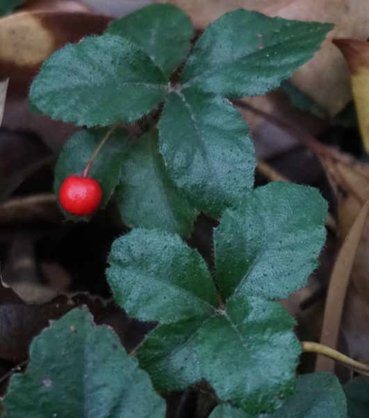 ツルコウジ(サクラソウ科)ですね。ヤブコウジの仲間で茎が横に這い、茎や葉に軟毛があるのが特徴です。